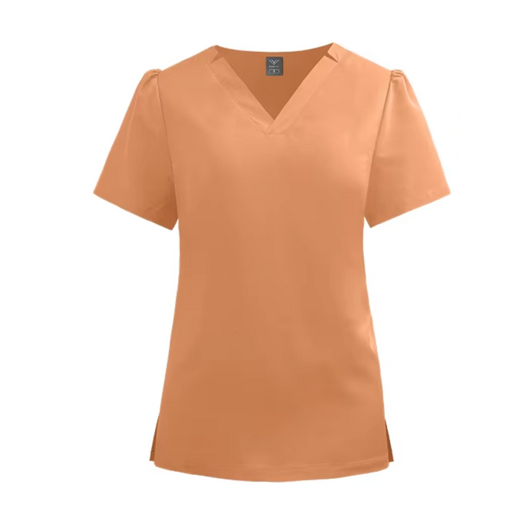 Designed for comfort and mobility, this V-neck scrub top features stylish V-cuts on the sides for a flattering fit. Made from soft, stretchable fabric, it ensures flexibility and breathability for long shifts.