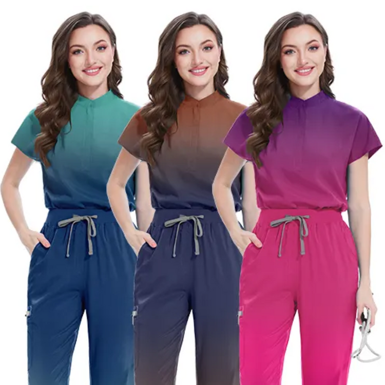 Medical Scrub Stand Collar Gradient Top
